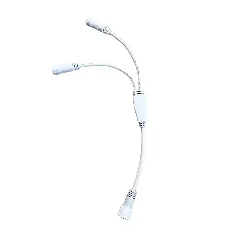 This white 2 way connector for mains voltage string lights allows you to split your lighting run into two separate directions from a single power source. Ideal for multi directional setups, this accessory provides flexibility and clean cable management for both residential and commercial installations.