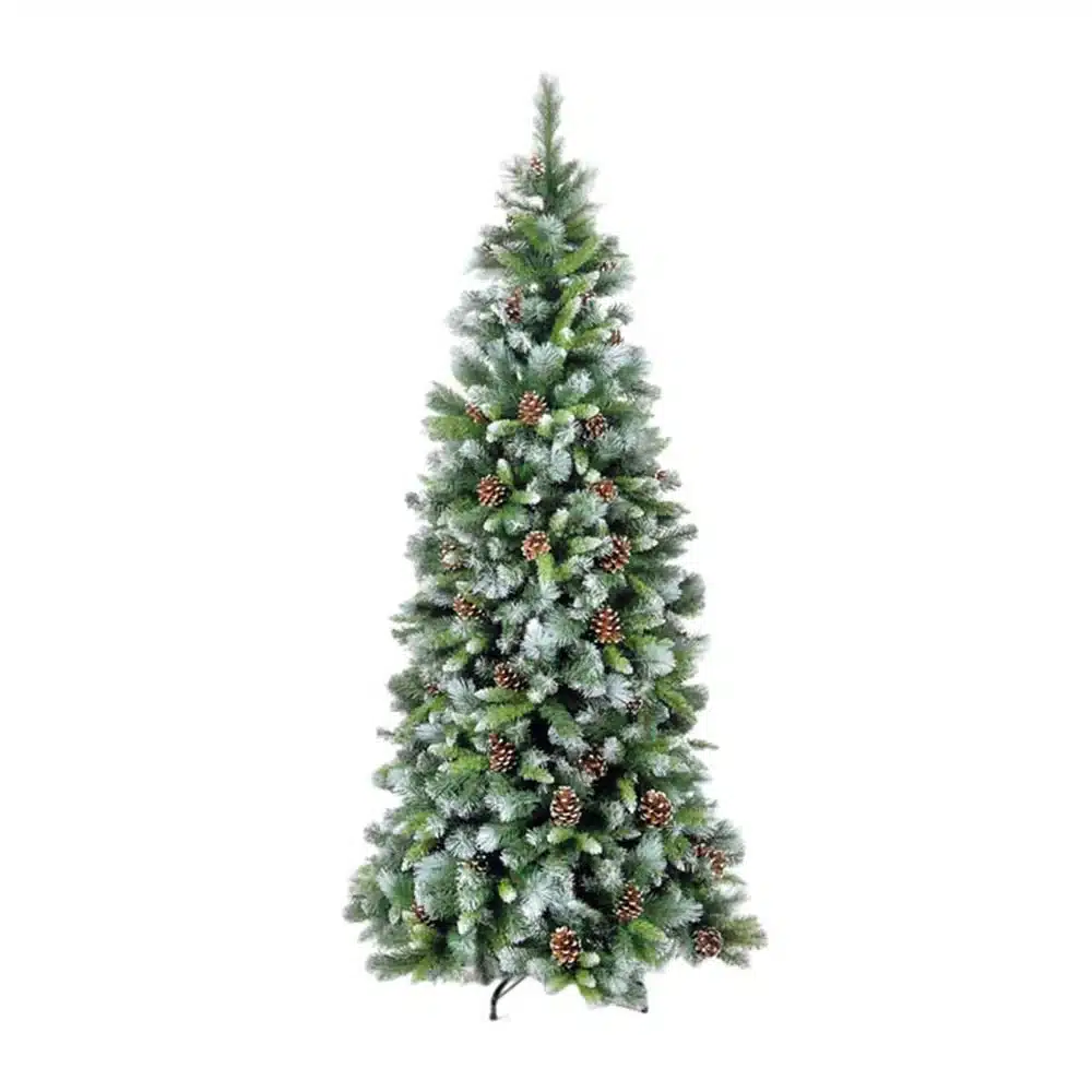- 10ft (300cm) tall artificial Christmas tree with frosted branches and pine cone decorations.