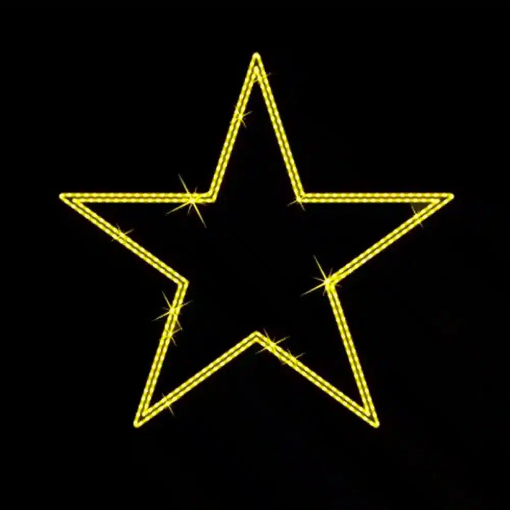 Bring timeless festive charm to your display with our 2D Christmas LED star decoration, designed to shine with simple elegance. This decoration features a classic five-pointed star made from a durable aluminium frame. The outline is illuminated with double line warm white LED rope lights, creating a bold and defined glow that stands out day or night. The design combines clean lines with brilliant brightness, making it a versatile addition to both commercial and residential displays.