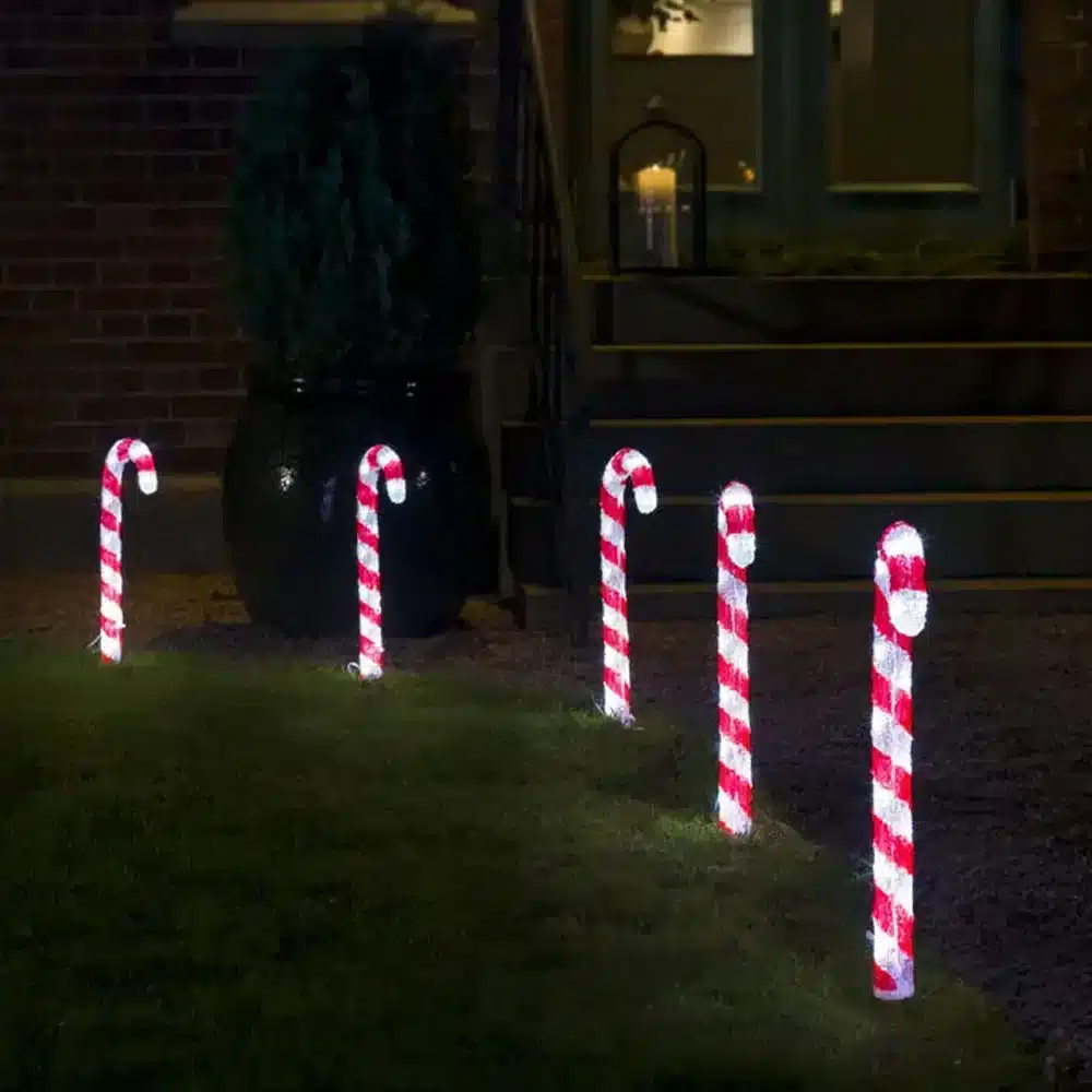 With a 4m illuminated section and a 9m total length, you can display the candy sticks together for a bold feature or spread them across wider areas. IP44 rated, this candy sticks acrylic outdoor Christmas decoration set is both durable and energy efficient, making it ideal for use year after year.
