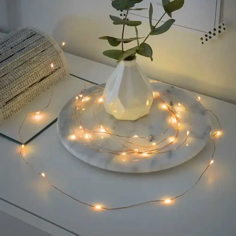 Enhance your décor with the soft, ambient glow of these 40 amber LED battery powered light set with timer function, designed for indoor use. This 40 amber LED battery light set is ideal for larger displays such as mantelpieces, windowsills, stair banisters or in lanterns. The LEDs emit a gentle amber light (2100–2200K), giving a cosy atmosphere for any indoor space. With 40 bulbs spaced 10cm apart across a 3.9m lit length, plus a 50cm lead wire to the battery pack, this light set offers extra coverage.