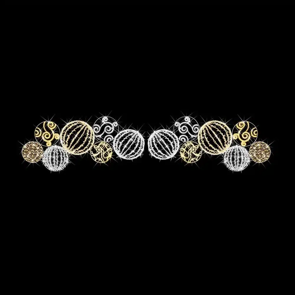 Create a striking visual centrepiece with the Christmas baubles cross street motif, designed to bring elegance and festive spirit to any outdoor space. This beautiful display features baubles of various sizes, artfully arranged across the motif, combine warm white rope lighting with ice white mini LEDs for a stunning two tone glow.