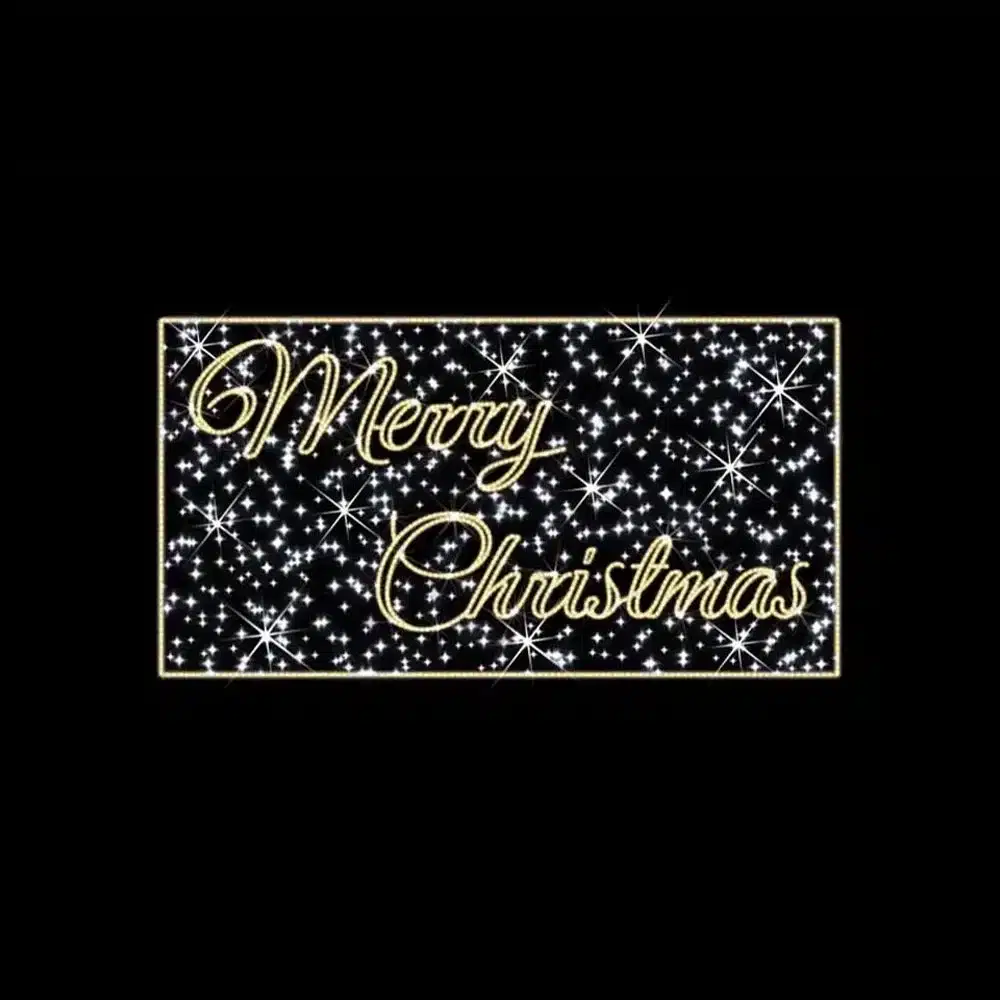 Celebrate the joy of the festive season with the Merry Christmas cross street motif in rectangular frame. This beautiful motif is designed with elegance, feature a large “Merry Christmas” sign illuminated by warm white LED rope lights, framed by a rectangular border adorned in the same warm glow. The interior of the frame is highlighted with ice white string lights, adding a magical, shimmering effect that complements the overall design.