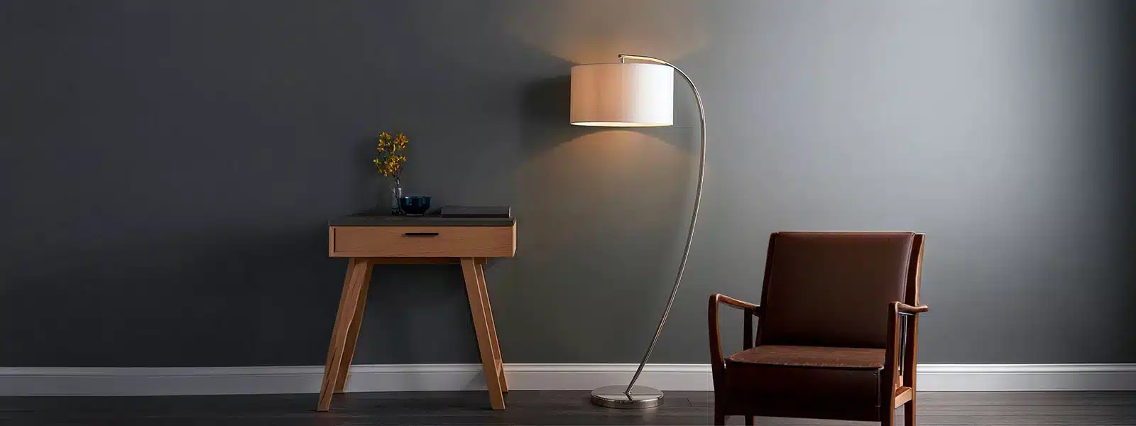 Arc floor lamps make a bold statement and bring light over sofas, armchairs and dining tables without needing ceiling wiring. The curved arm reaches out to position the shade exactly where you want it. Use an arc lamp to create a cosy reading spot or to add soft ambient light in open-plan spaces.