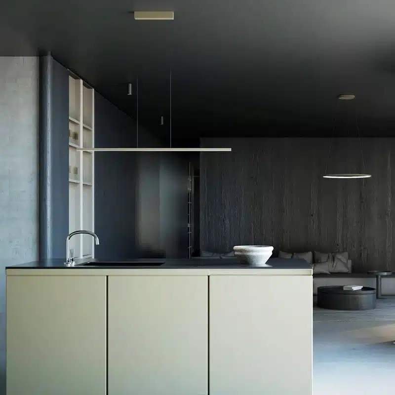 Bring a soft modern look to your interior with this bar LED 3000K silk olive linear suspended pendant light. This slim linear fitting in a refined silk olive finish is a great choice for kitchen islands, dining tables and breakfast bars. Its long, narrow shape helps create a neat architectural look while keeping the design simple and elegant.