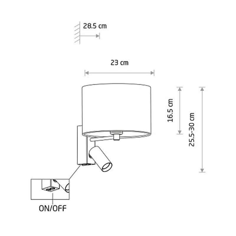 This wall light uses two light sources, combining a main E27 lamp holder with a secondary GU10 R35 spotlight. This clever design lets you enjoy general ambient light from the fabric shade while also using the spotlight for more focused illumination. As a result, it is a practical option beside a bed, next to a sofa or in any area where you want both decorative light and directed light in one fitting.