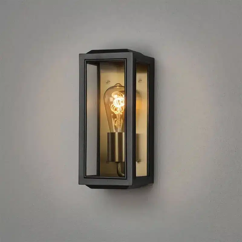 Note: This Black Brass Outdoor Wall Light With Clear Glass requires 1 x E27 LED light bulb (sold separately). For a more decorative effect, we recommend choosing a vintage-style E27 LED bulb.