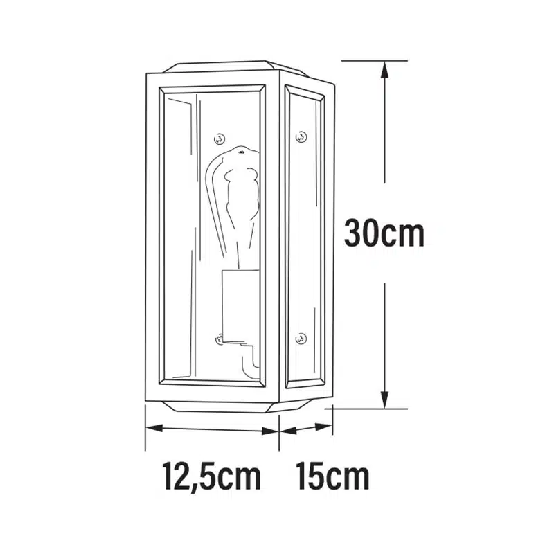 This outdoor wall light does not include a bulb, giving you the freedom to choose the look and brightness that best suits your space. For the most decorative result, pair it with a vintage style E27 LED bulb to enhance the clear glass design. The fitting is also dimmable when used with a compatible dimmable light source, allows you to adjust the mood as needed. At 30cm high and 12.5cm wide, it offers a neat wall mounted size that works well on its own or installed in pairs beside a doorway or entrance.