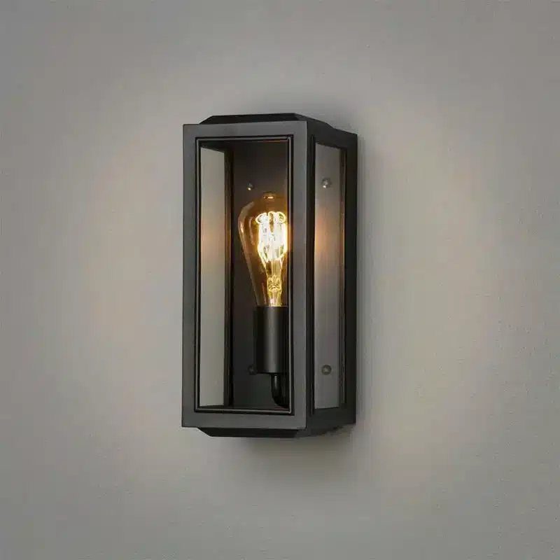 Add timeless style and ambient lighting to your outdoor space with this elegant black clear glass outdoor wall light. Feature a clean box frame design with clear glass panels, this outdoor wall light offers both functional illumination and decorative appeal. Ideal for entrances, patios, garden walls or porches. Made from durable steel and fitted with transparent glass sides, this outdoor wall light allows for maximum light output.
