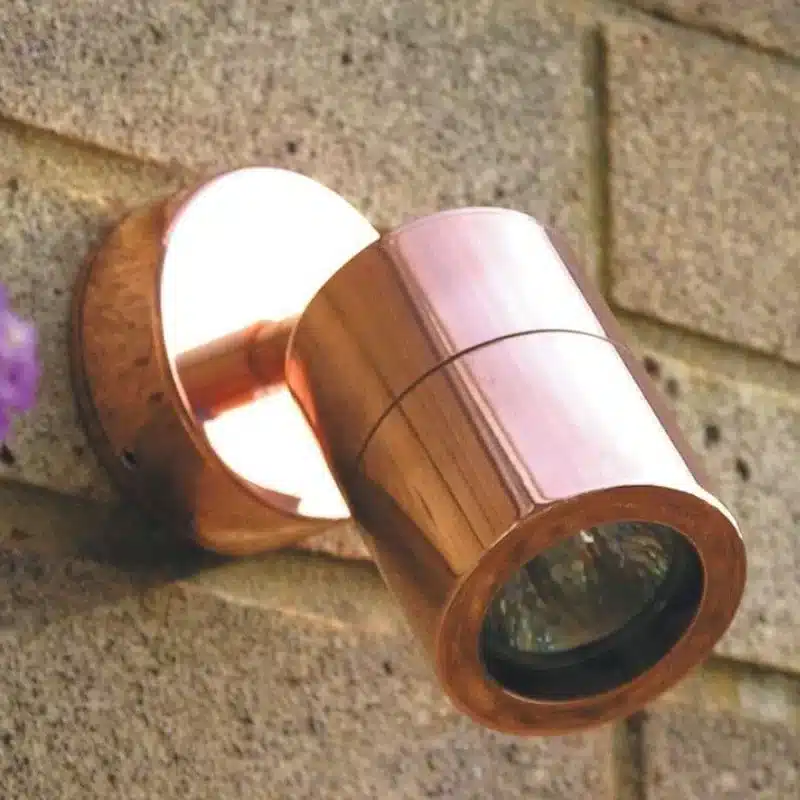 Note: This adjustable natural copper outdoor wall light requires GU10 LED light bulb (sold separately).