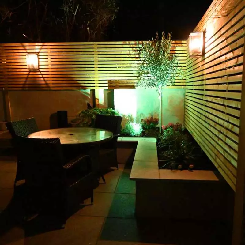 Our lighting experts recently completed this vibrant garden lighting project in Kilmacud, Dublin blending function, flexibility and visual impact. The design features outdoor wall lights for subtle perimeter illumination, spike lights to highlight planting and focal points and decorative garden ball lamps fitted with colour changing LED bulbs for a touch of playful elegance.