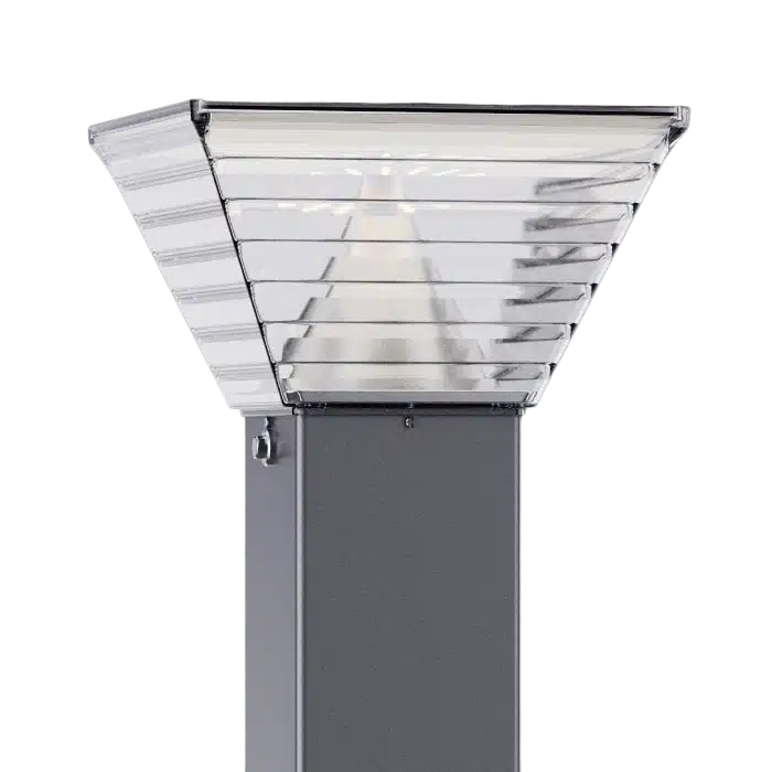 The HADES Solar Bollard Light is an ultra-powerful outdoor bollard delivering up to 480 lumens, ideal for hotels, gardens, parks and premium landscapes. It features a 9.2W high-efficiency mono solar panel (up to 19.5%) and a 3.2V 12Ah LiFePO4 battery for reliable long-runtime performance. An internal tower-shaped mirror reflector boosts brightness and provides a more uniform light spread. Once fully charged, it can operate for 3–5 days during cloudy or rainy conditions. Built for durability, the fitting is IP65 waterproof and IK08 impact-rated. Available in white CCT (WW/DW/CW) or RGBCW with 2.4G remote control. The modular system allows flexible pillar height options, including customisable heights, with fewer light head types needed for simpler stocking.