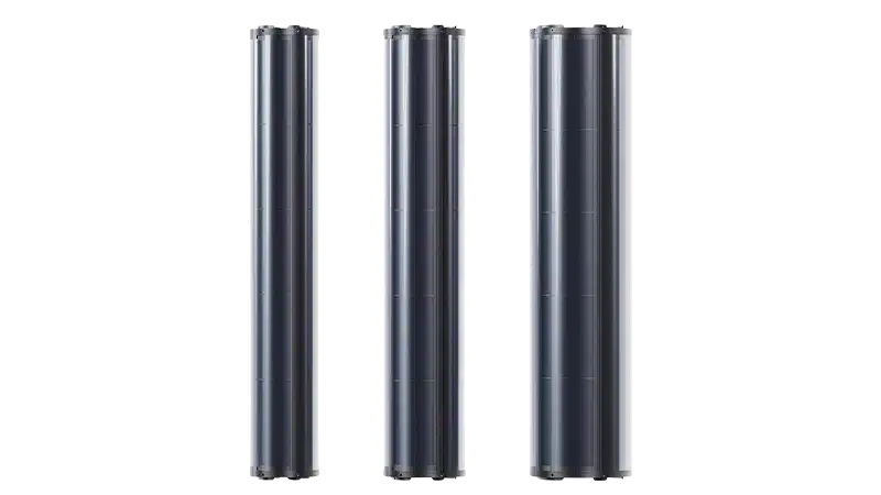 The SolarWrap Vertical Solar Cylinder is a premium pole-mounted solar solution built with SUNPOWER cells (USA-made) for exceptional power generation efficiency. Its flexible cell structure helps prevent cracking and delivers up to 10% better performance in low-light conditions compared to standard monocrystalline panels. Protected by tempered glass, SolarWrap resists wind, sand, UV exposure and dust build-up for reliable outdoor performance. Designed for long-term use, it offers an expected service life of 20+ years with minimal maintenance.